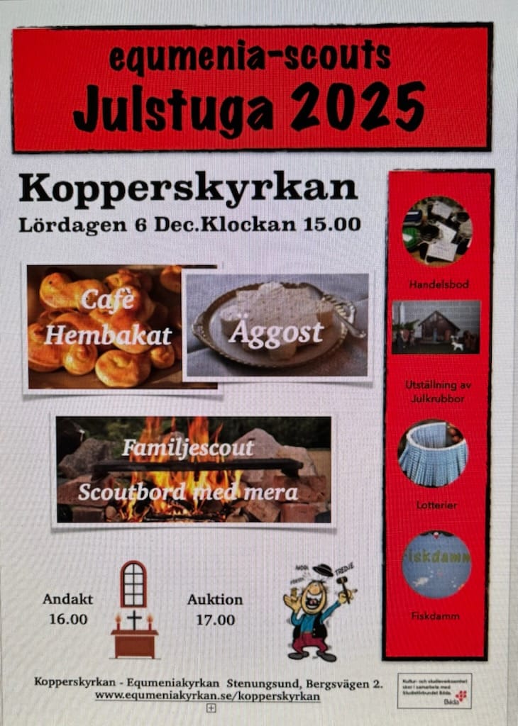 Lördag den 6 december har scouterna sin julstuga i Kopperskyrkan.